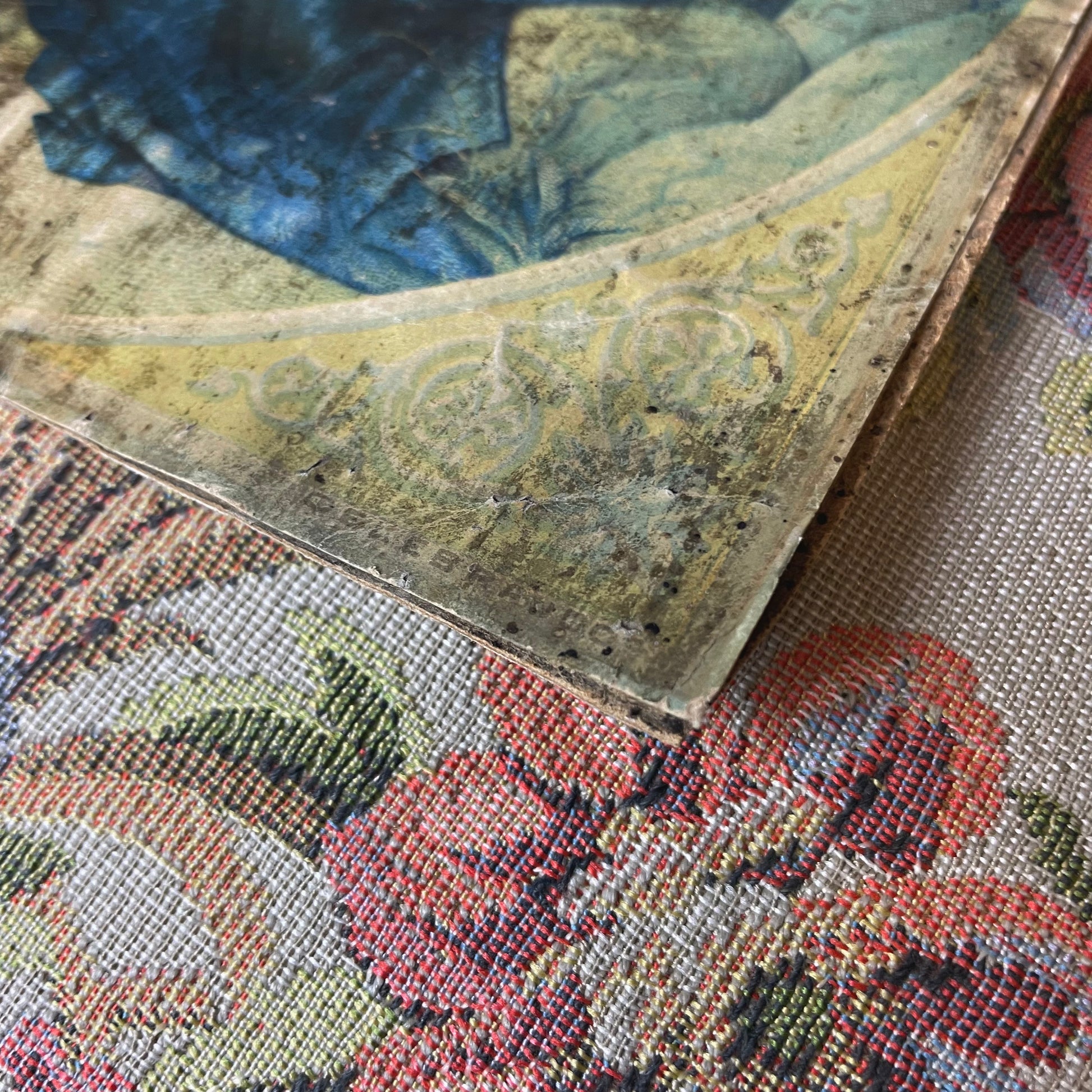 It's a reproduction of a painting, a 19th-century chromolithograph print, which was a popular method for mass-producing religious art back then.