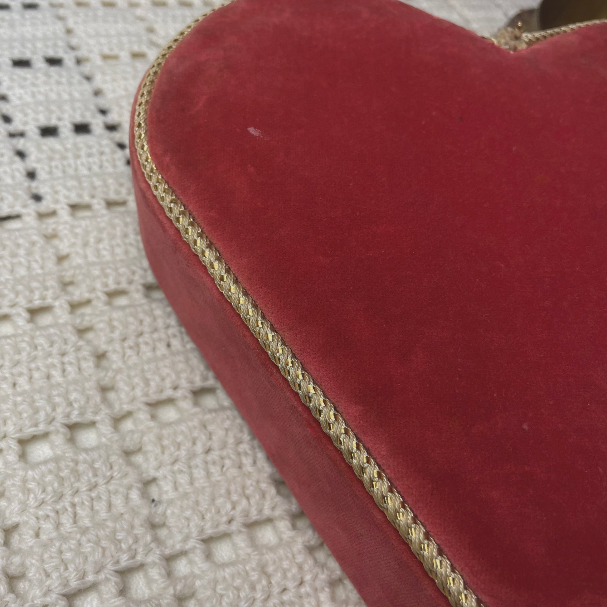 Very cute dusty rose heart-shaped chocolate box. Can now be used for any keepsakes. Probably made during the Valentine period in February. Super sweet and quite spacious. The fabric could use a handwash.