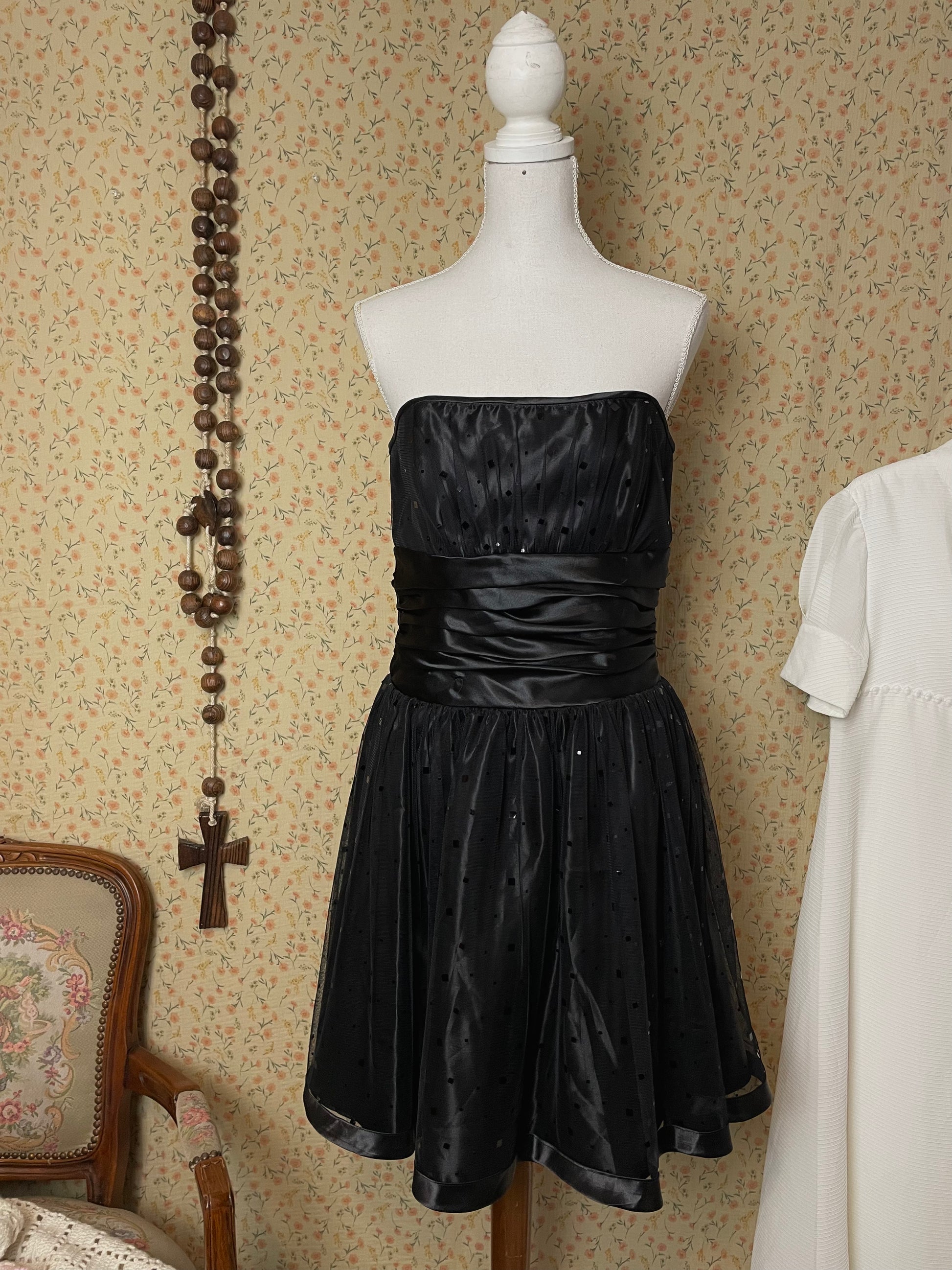 Meet this 1990s beauty, a sparkly Gunne Sax treasure. Square reflective decorations all over, imagine these sparkles under a disco ball. Whimsy but goth feeling, a perfect 90s combination. Zipper and hook-and-eye closure is in perfect condition. A-line silhouette, give the skirt a perfect moment to twirl around.