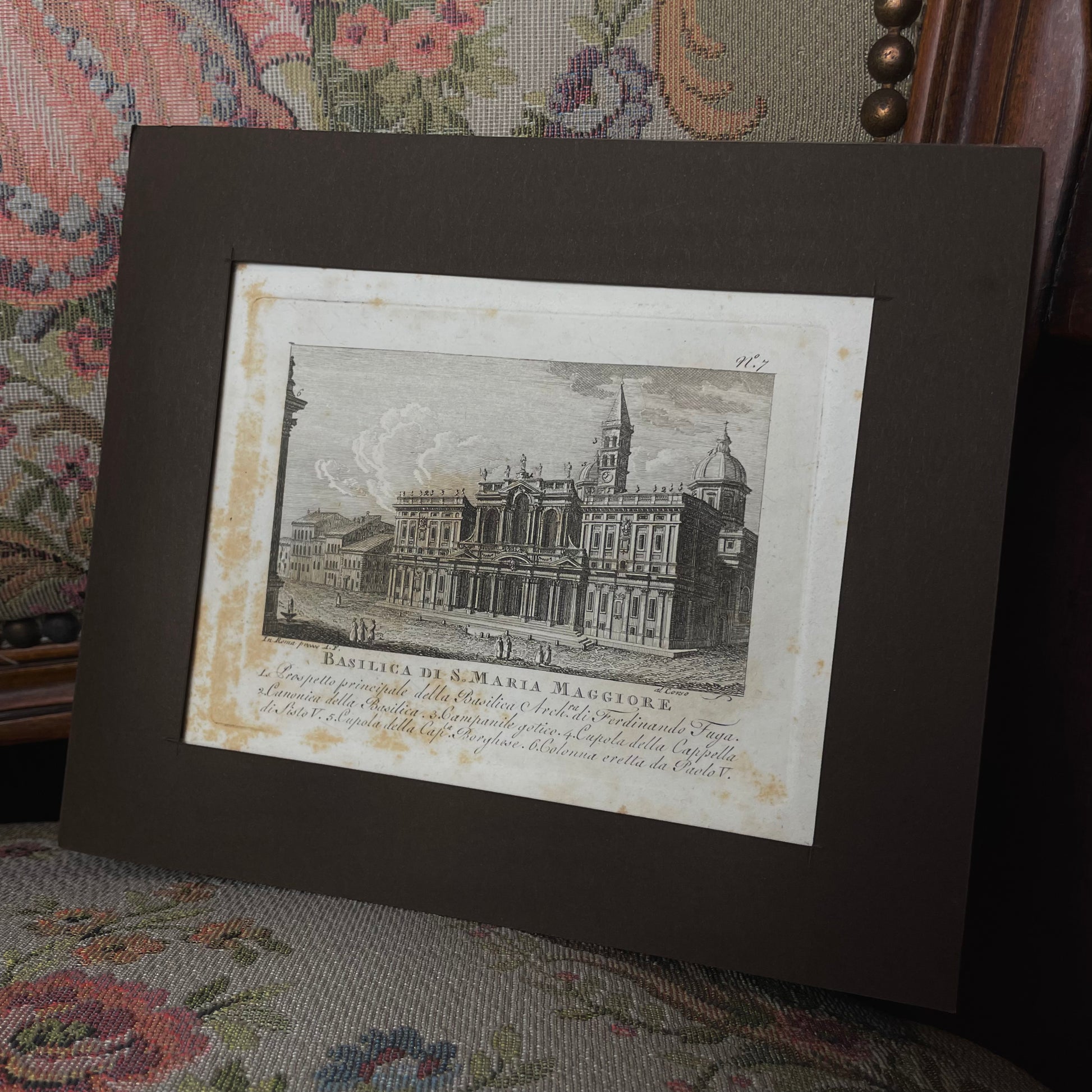 Beautiful aqua forte (etching/aquatint) of Basilica Di Santa Maria Maggiore from 1820.