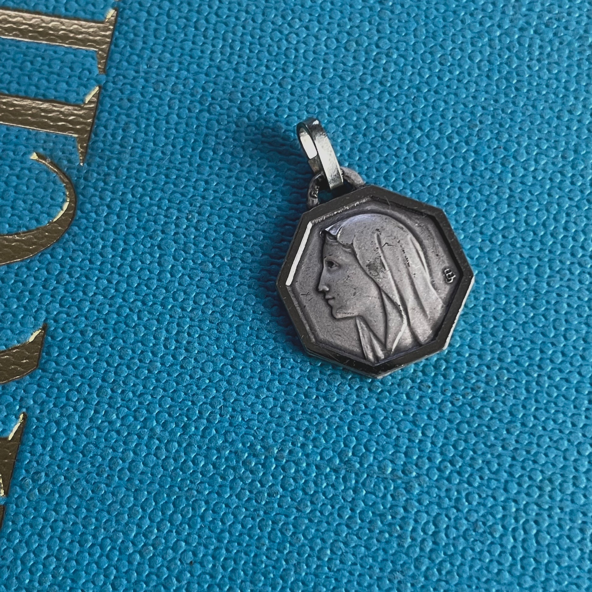 Gorgeous silver coloured pendant, depicting the Blessed Virgin Mary and her sighting in Lourdes on the back.