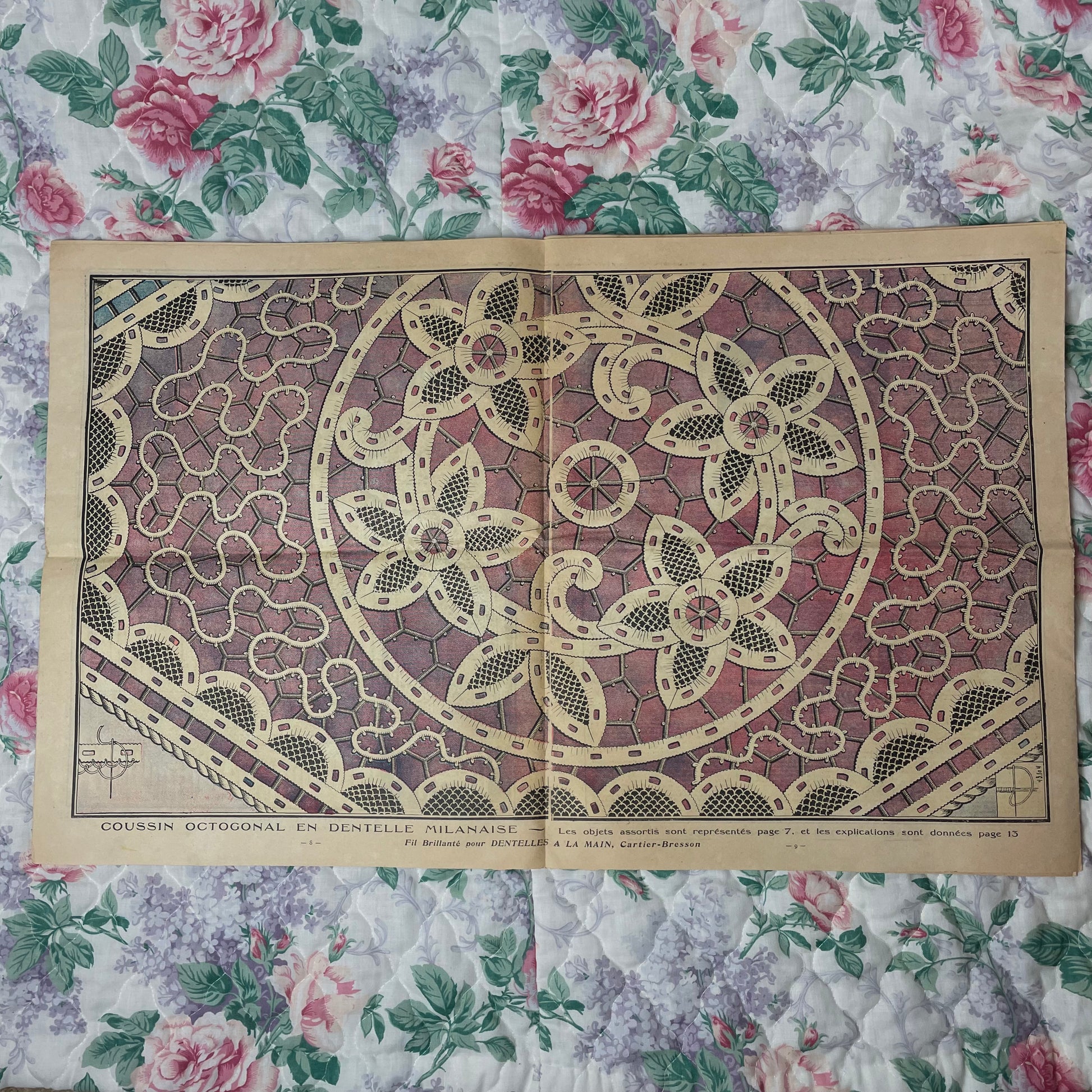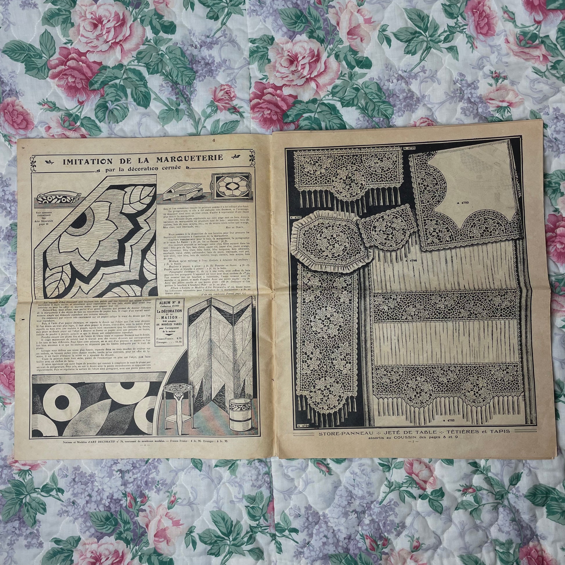 French fashion magazine with articles and instructions for crochet projects. Beautiful colored cover for this time. Still in great condition to add to your collection or research purposes.