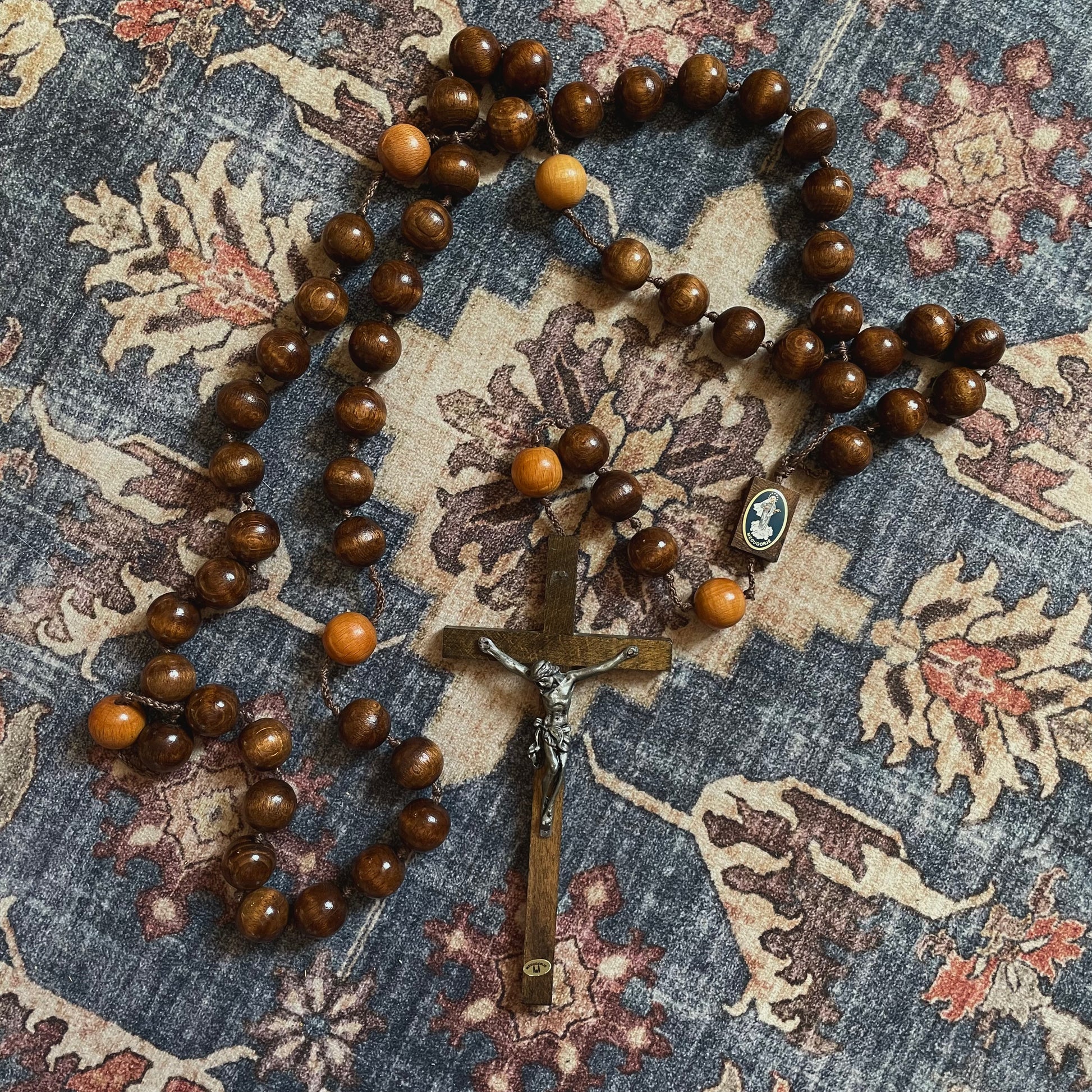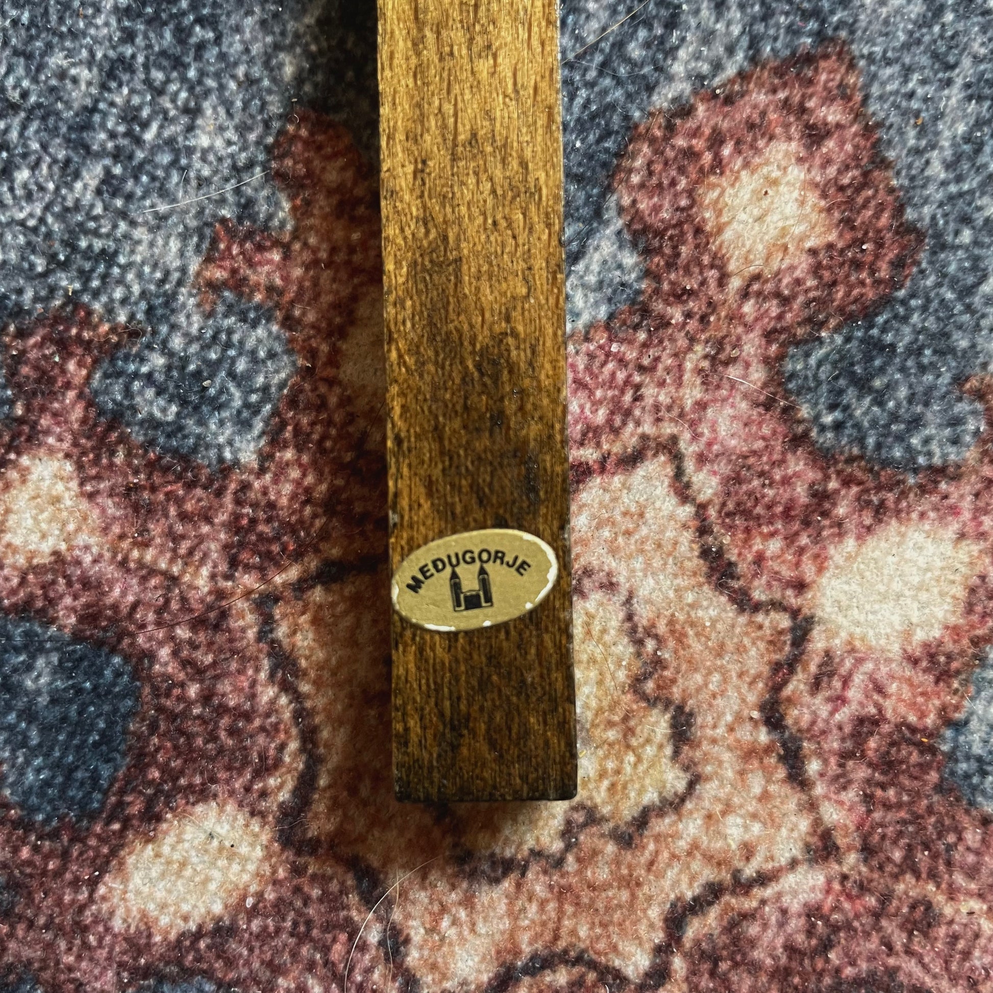 This wooden rosary is in beautiful condition and shows medallion of Our Lady of Medjugorje from Bosnia and Herzegovina. This name refers to the reported apparitions of the Virgin Mary to six children, now adults, in Medjugorje, starting on June 24, 1981. Medjugorje has become a significant pilgrimage site for Catholics, attracting millions of pilgrims annually, making it one of Europe's most important apparition sites.
